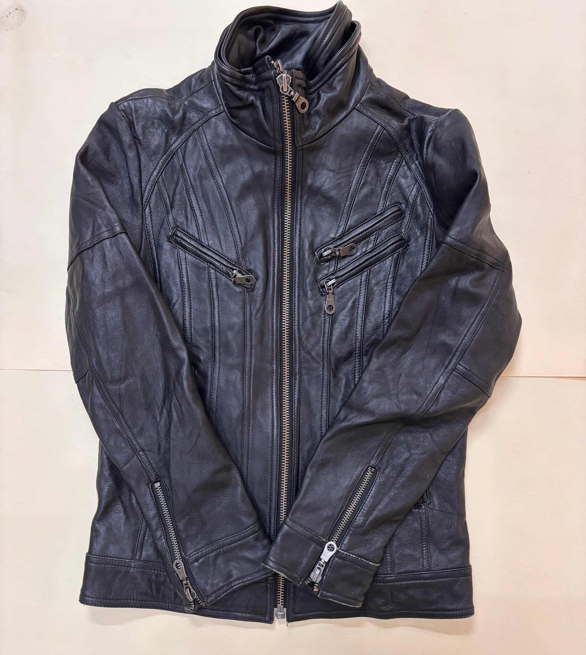 Original Heavy Leather Black Double Zippers Jacket